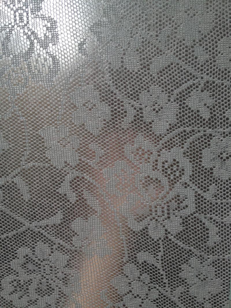 Après avoir mis la dentelle sur la fenêtre, elle a mis une autre couche de la pâte au-dessus. Au début, la pâte peut avoir une teinte blanche, mais ça deviendra clair quand elle sèche (dans environ 12-24 heures).