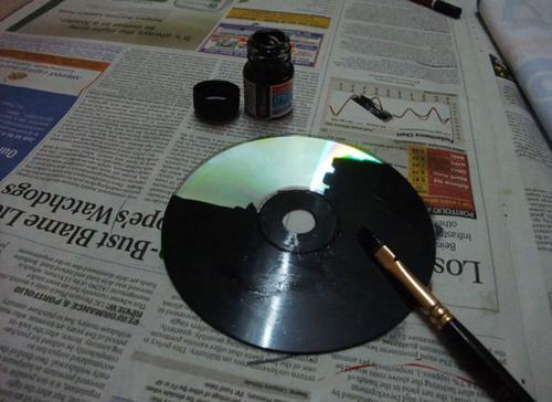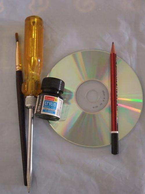 Tout ce dont vous avez besoin c’est un vieux CD, un pinceau, un crayon, de la peinture acrylique noire et un tournevis.